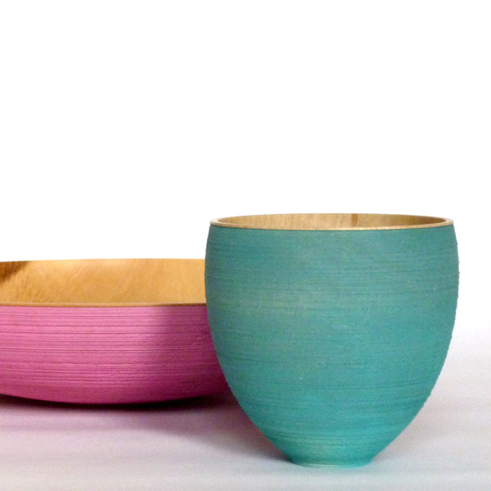 Die Holzschalen von Hendrik Hinrichs leben von den Kontrasten. Die feinen Holzmaserungen stehen knalligen Farben gegenüber. Alle Schalen sind von Hand gedrechselt, so ist jede ein Unikat. Zuschneiden – Umformen – Hand anlegen – Umformen – gestalten – der Designer hat eine große Faszination für das Handwerk und die Gestaltung von Oberflächen.